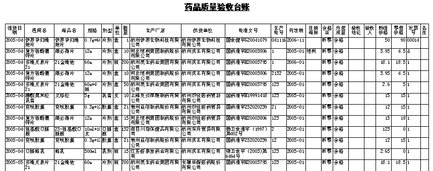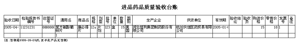 進口藥品驗收臺賬